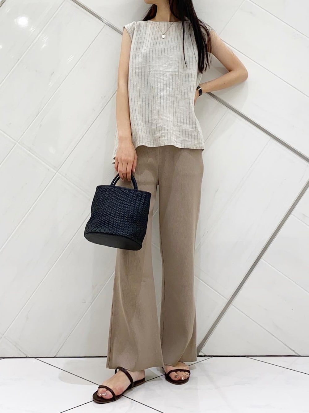 ワントーンコーデです✨ テレコリブパンツはシルエットが綺麗でおすすめです!