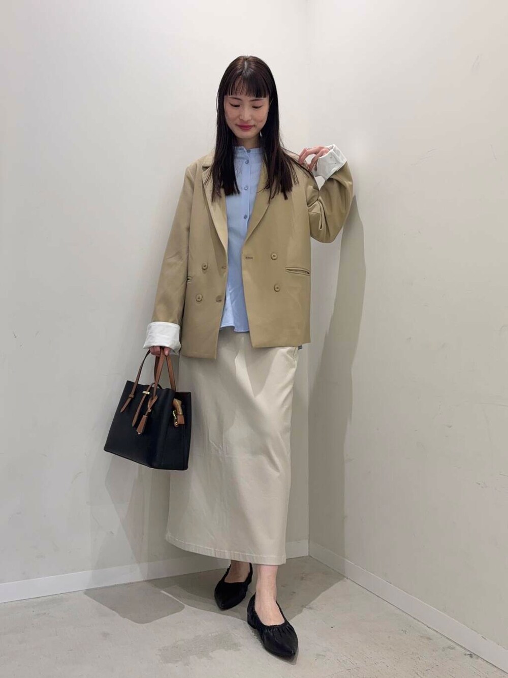 オフィスカジュアルコーデ♡ ロールアップのジャケットは店頭でも大人気アイテム❤️❤️ 若干ゆるっとした感じがカジュアルにも着れるため◎ ブラウスも水色で少し春らしく☘️ ぜひチェックしてみてくださいね◡̈⃝♩