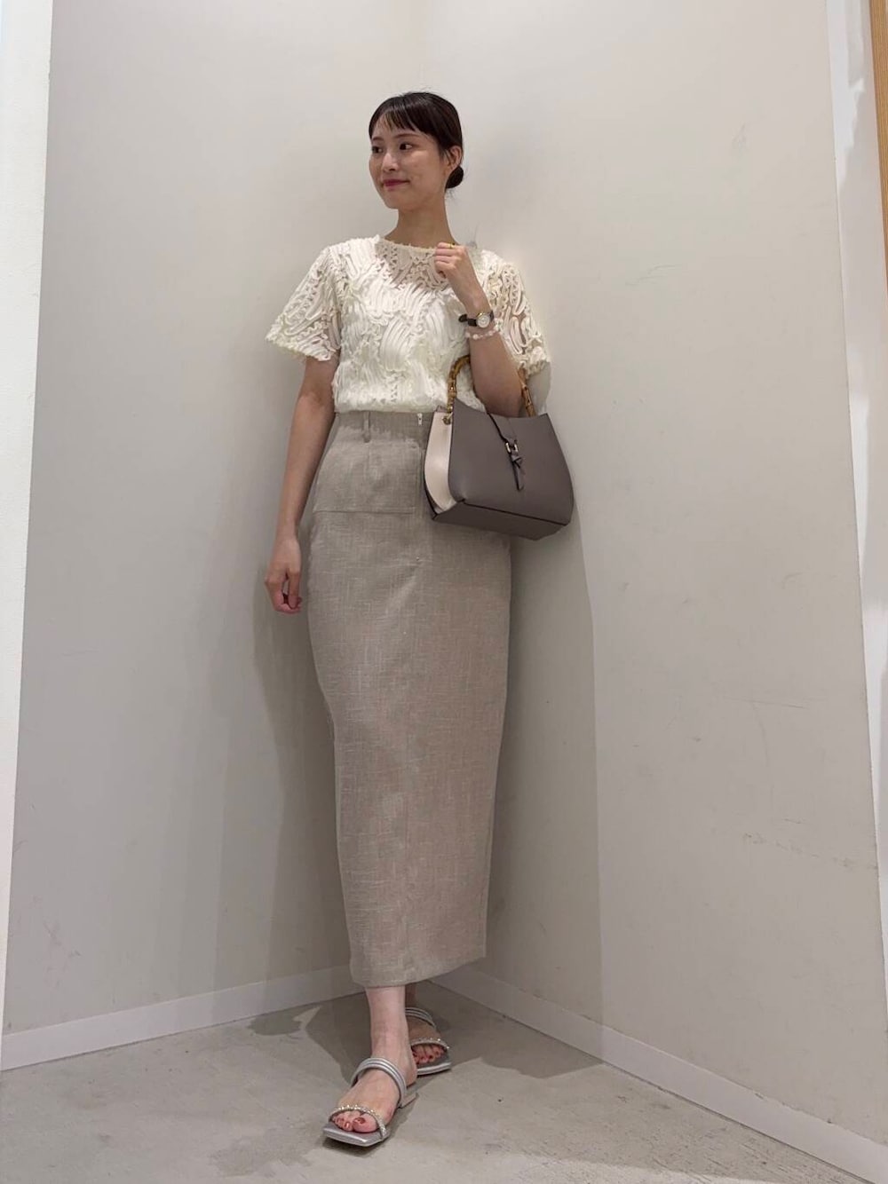 綺麗めコーデです⭐︎ センスオブプレイスでは綺麗目のオフィスカジュアルらしいアイテムも取り揃えてます◎ このコードシシュウも大人気ですよ!