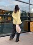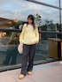 着用コーデ:55件リアルバイコーデ🤞🏻💛 このイエローのカラーが可愛くて一目惚れ。 ゆるっとスラックスと合わせて着るのがおすすめ🤍🤍 スラックスもウエストきつきつではないので ゆるっと着るのが好きな方におすすめです❤️🔥
