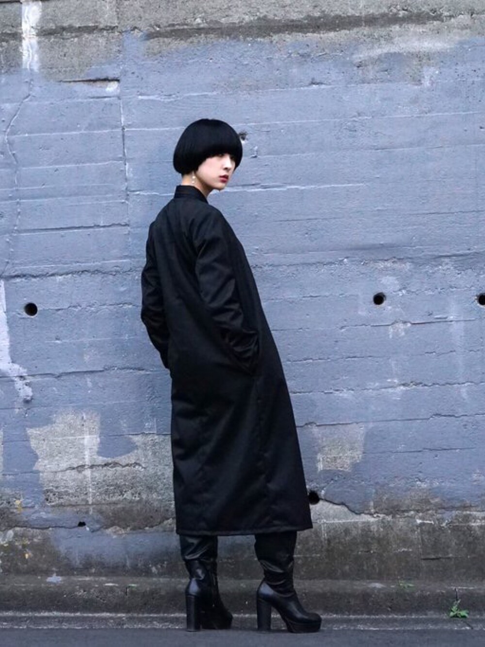 ブラック系のシャツ/ブラウスを着用したレディースの春コーディネートの1枚目の写真