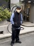 髪の毛をブルーにしてからは ブラックやブルー系ばっかりきてるw ダウンベストはひとつあると コーデの幅も広がるし今の季節にぴったりあったかです✌️ モバイルポーチは、 本革とナイロンの組み合わせが可愛いんです!絞り部分がコードっぽいところもお気に入り👍