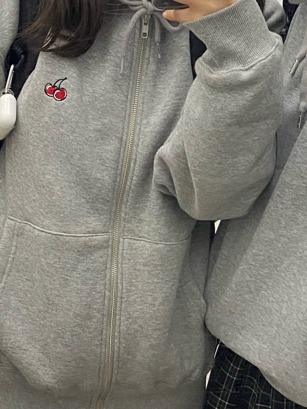グレー系のパーカーを着用したレディースの秋コーディネートの1枚目の写真