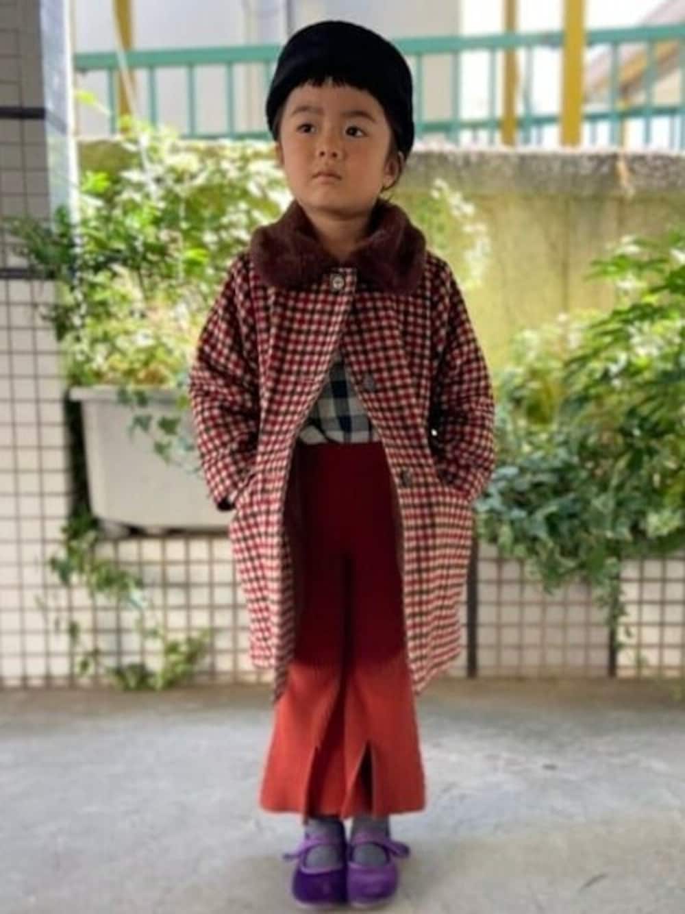 B:MING by BEAMS KIDS(B:MING LIFE STORE by BEAMS)のステンカラーコート「B:MING by BEAMS / ファー付き チェック コート(90~150cm)」を使ったコーディネート