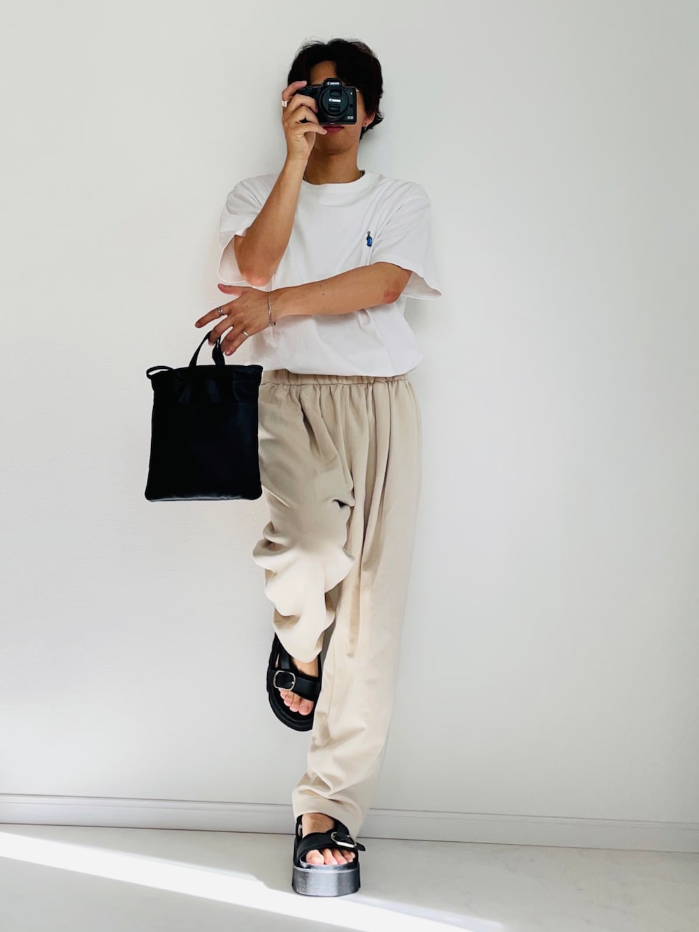 miyaのショルダーバッグ「《UNISEX》【EX】Vegan Leather Shoulder Drawstring Bag/ヴィーガンレザー巾着ショルダーバッグ【MAISON SPECIAL/メゾンスペシャル】」を使ったコーディネート