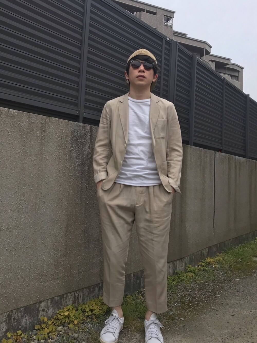 子猿TKのテーラードジャケット「SHIPS JET BLUE: セットアップ リヨセル リネンジャケット■」を使ったコーディネート