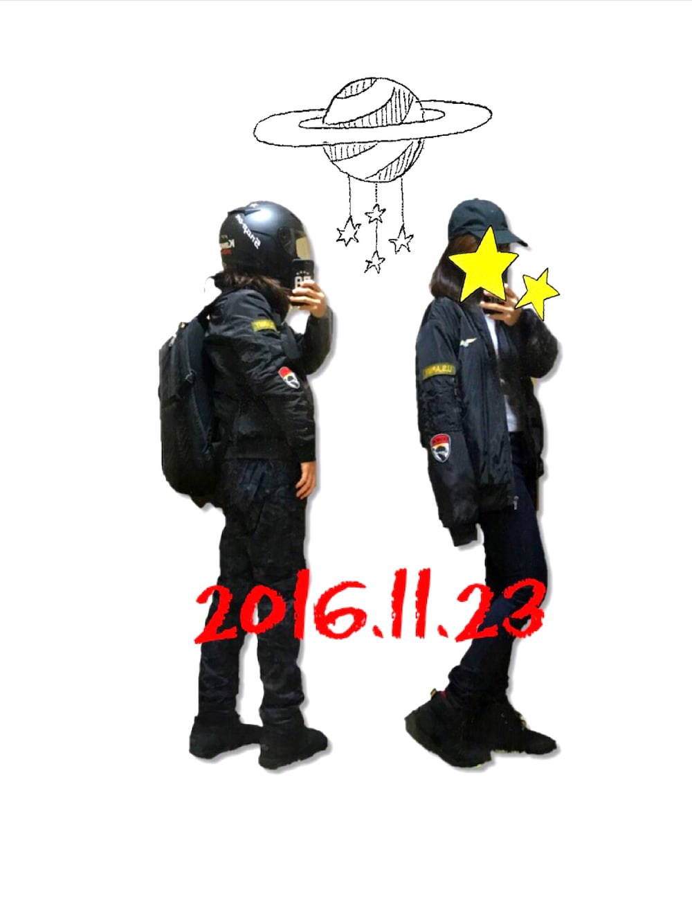 寒さ対策万全のバイクコーデです! 左側はGUのスキニーの上から UNIQLOの暖パン履いてます。 メンズの暖パンやから、ゆとりがあって上から履けるし、 バイク乗っても裾上がってくるぶし寒くなることはない! 素敵!! MA_1はメルカリで購入。 新品やねんけど、記載情報によると 元値の3分の1で出されてるらしく? 品落ち物なんか、ぱちもんなんか、よく分かりません。 でも風通さんくて中綿入ってるしでなかなか良い◎ これもメンズサイズで買って、 さすがに肩がえらいこっちゃなったので おばあちゃんにお直ししてもらってさらに良い感じです◎◎ * ⌒⌒⌒⌒⌒⌒⌒⌒⌒⌒⌒⌒⌒⌒⌒⌒ * ヘルメット、上からの写真でお気付きの方いるかもですが、 バンプ仕様です。 定番の数字の「79」 このステッカー実は質感がそれぞれ違ったの買ってしまい、 ちゃんと買おう買おうと思ってそのままです。。 そして今日はシグナスちゃん。バリちゃんは最近乗れてない。 南海トラフが怖くて、防災グッズをメットインに入れて 行動しております。