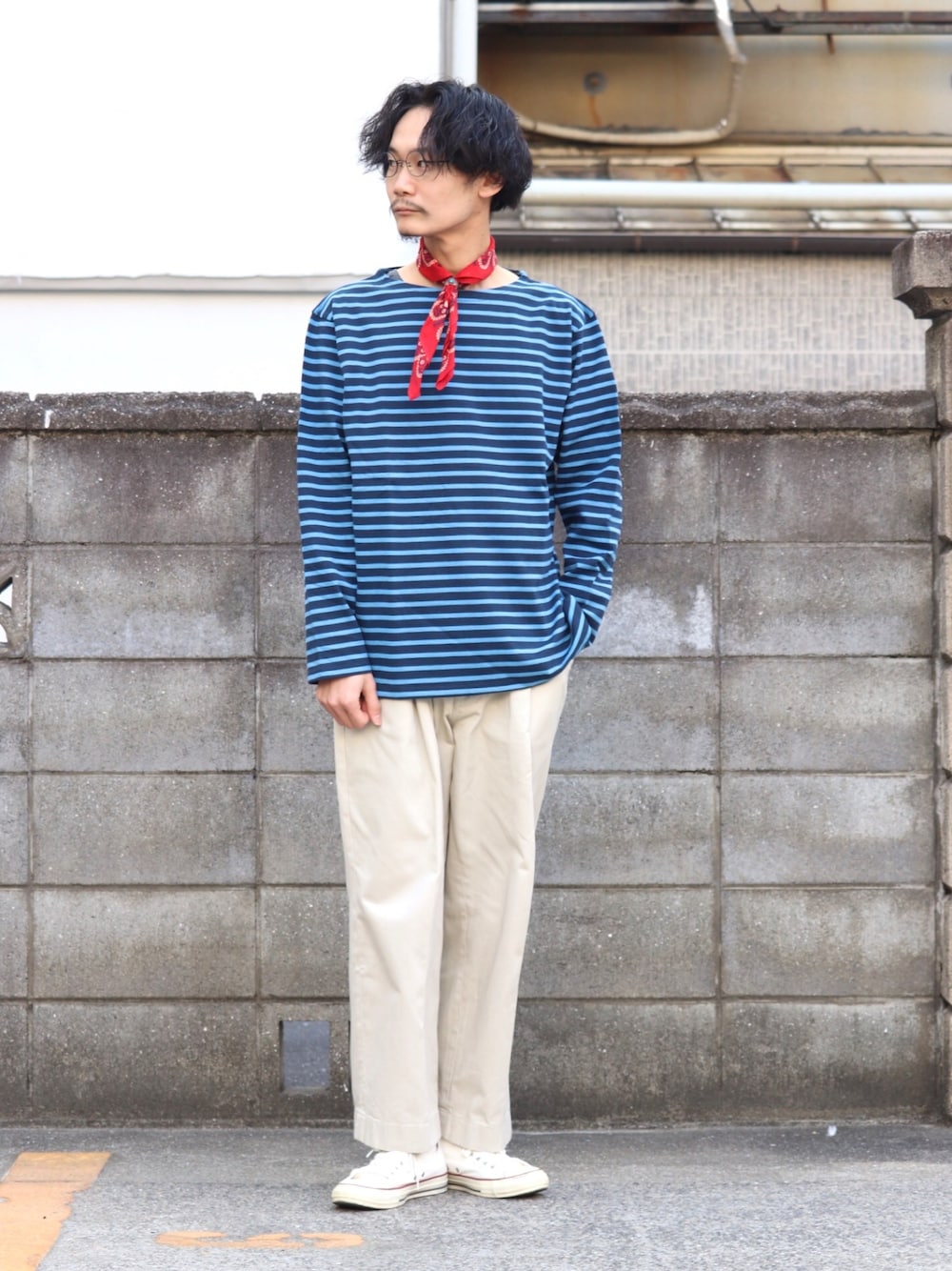 FORK&SPOONの定番であるボーダーのバスクシャツの新色ブルーを主役に、春らしくスタイリングしました