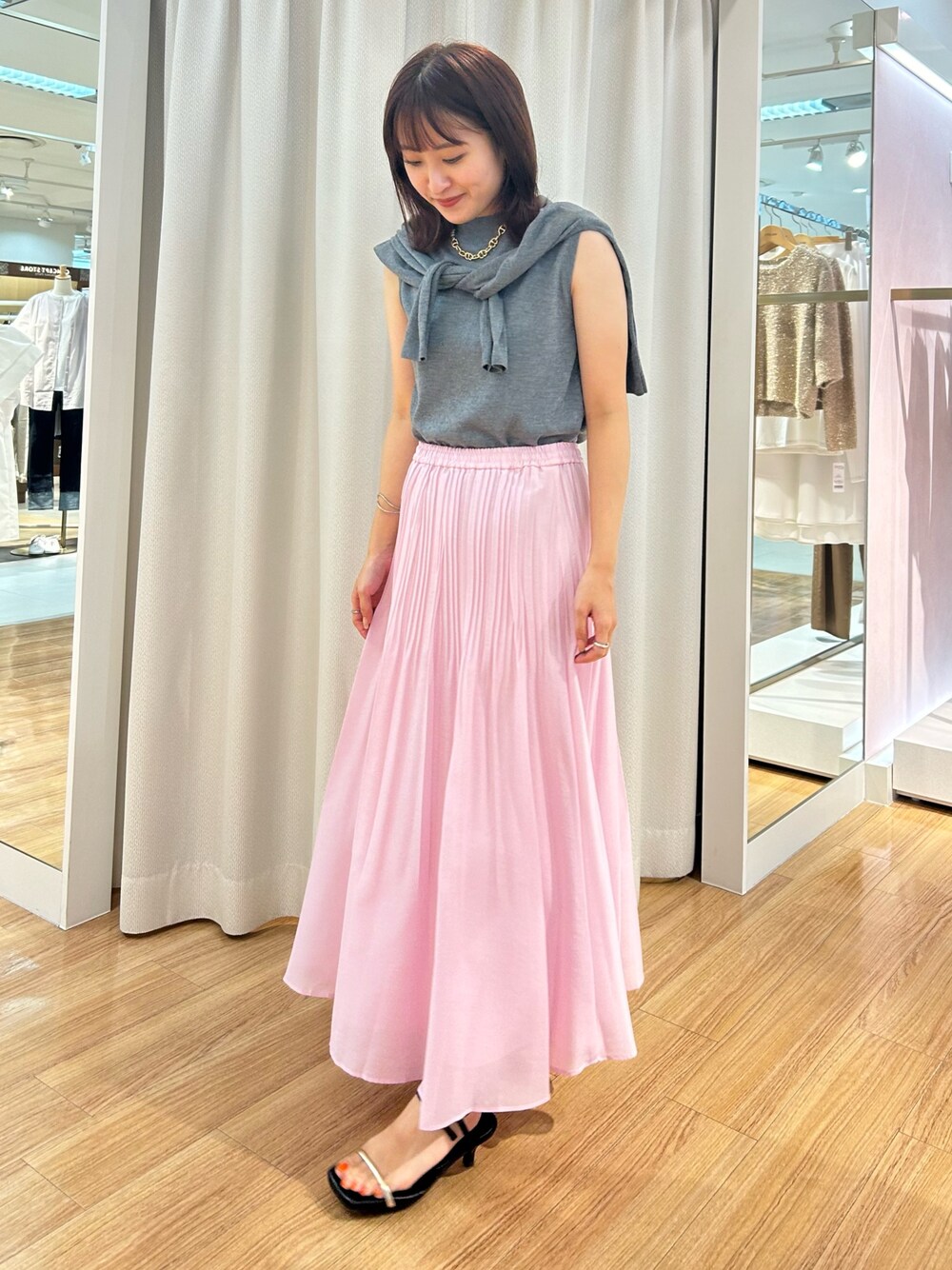 yuka(ノーリーズ新宿京王店)のスカート「オーガンジープリーツスカート」を使ったコーディネート