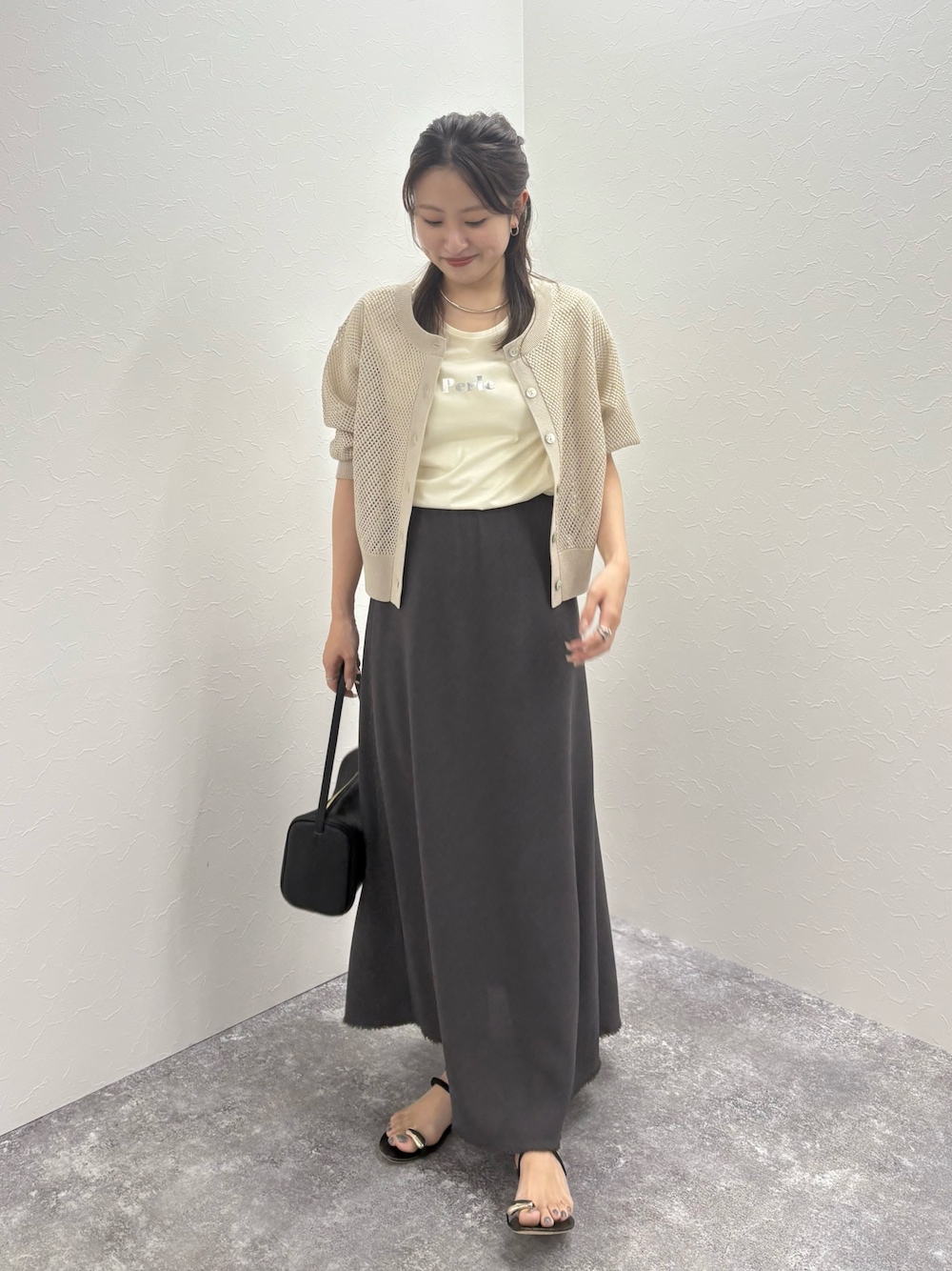 店頭でも人気のメッシュカーディガン。 コンパクトな丈感なので どんなボトムスとも相性良し👍🏻 夏の羽織にもぴったりです ベージュは肌の色と馴染むので、 程よい透け感。 スパンコールも自然な華やかさで 普段着ない方でも挑戦しやすい!