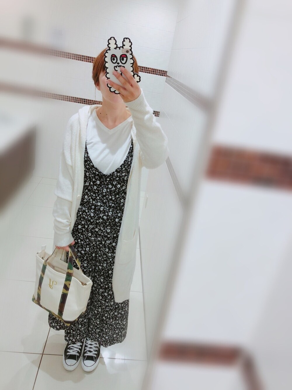URのサロペットに、去年買ったしまむらのカーディガン合わせました。 久しぶりに、llbeanバック使いました❁