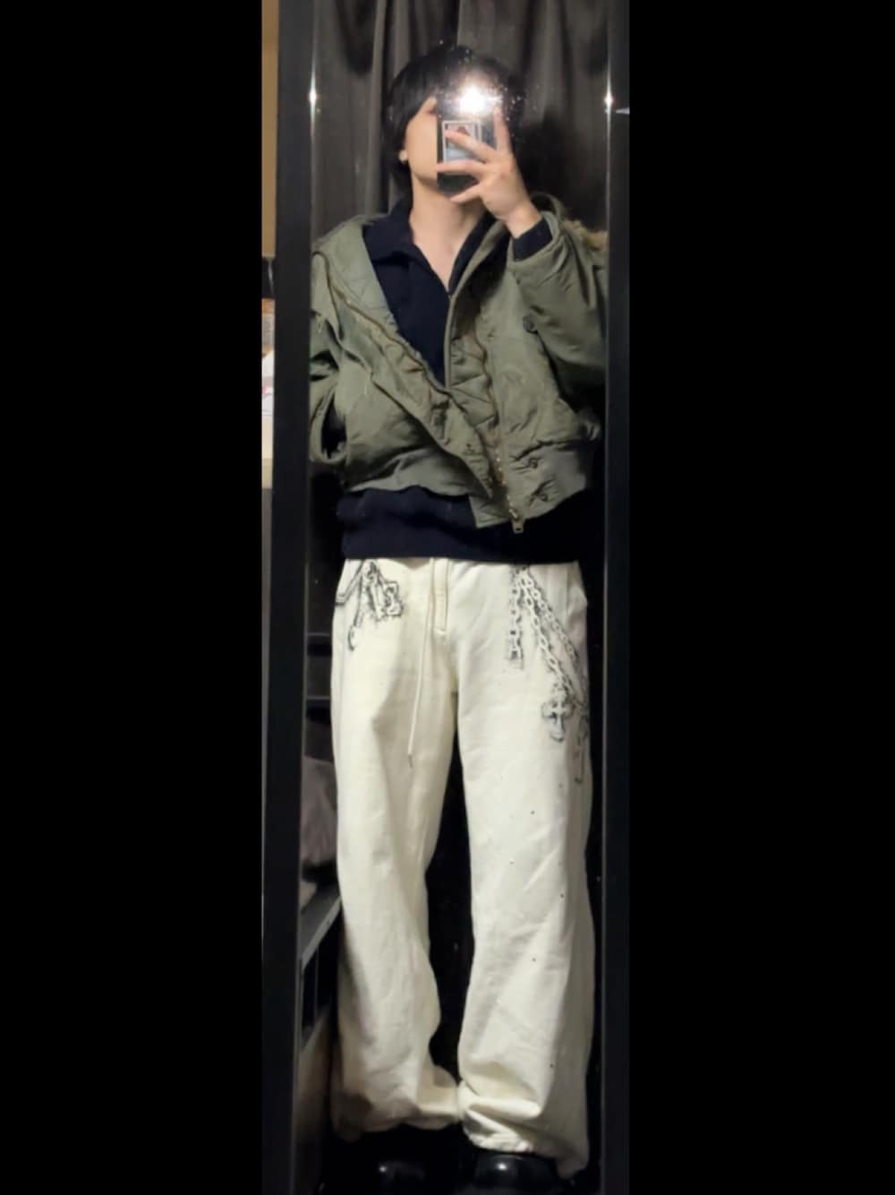 bo27のスウェットパンツ「【GRANCY】Rhinestone Design Layered Sweatpants / ラインストーンデザインレイヤードスウェットパンツ」を使ったコーディネート