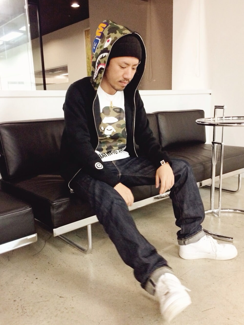 A BATHING APEで。 ちなみに、パーカーサイズはS、TシャツはMサイズ。 もともと作りが大きいのでダボっと着たい方はMサイズが良いかと! ⚫︎パーカー: シャークパーカー ⚫︎Tシャツ: カモ猿 ⚫︎その他: いつもの一緒