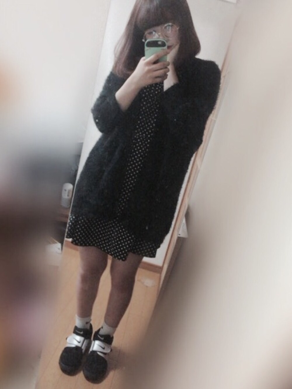 900 円の ワンピースに F21の カーディガン ❤︎ 足元は あえての スニーカー ❤︎ ソックス共にNike で揃えました ❤︎ このコーデ 個人的に お気に入り です ❤︎