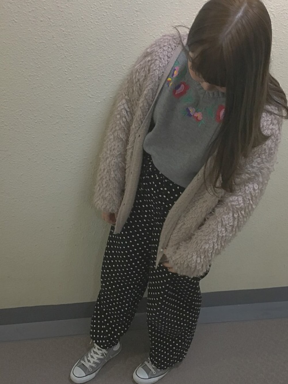. 3月になってからずっといい天気 ☁️ なのでアウターはカーディガンにしてみました! なかなかゲットできなくて苦戦した kastaneのループ編みカーディガンは ドット柄のワイドパンツと相性バツグン ◎ 中のニットも刺繍がかわいくてお気に入りなんです🌸✨✨ .