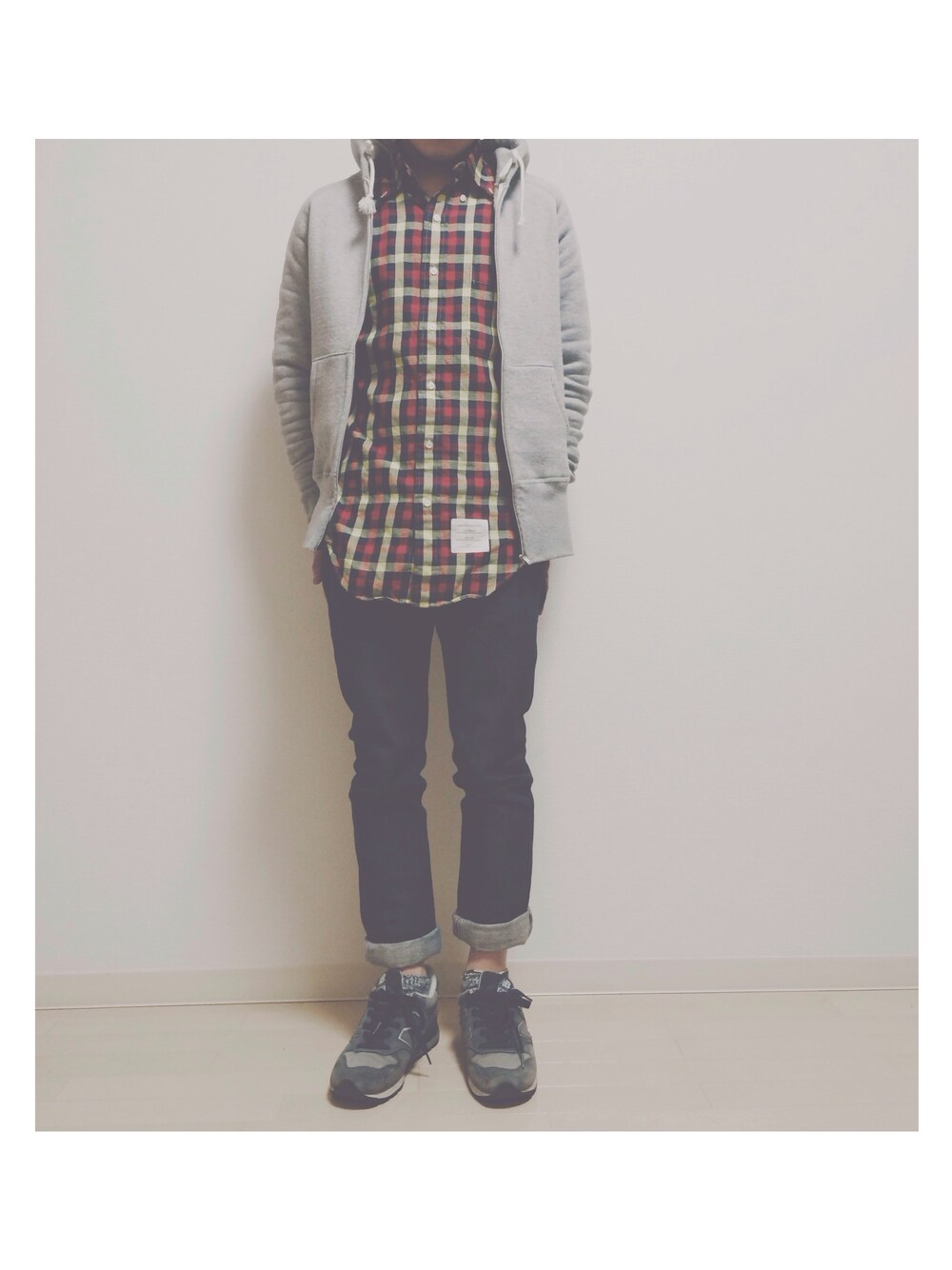 スキニーデニムはアーペーセー スニーカーはニューバランス