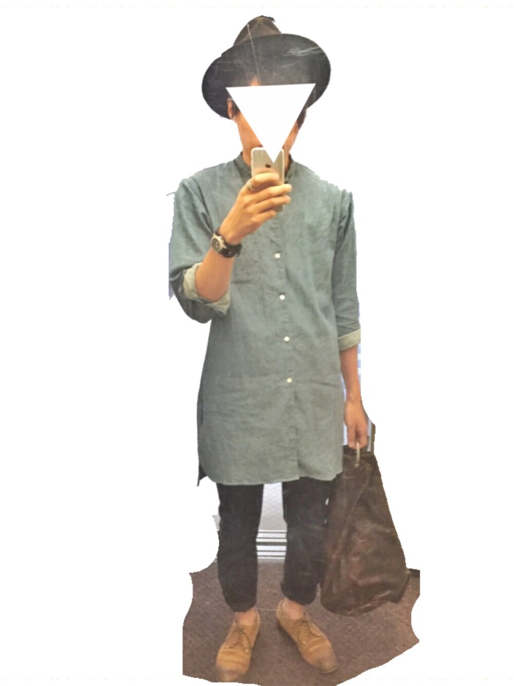 ボブのシャツ/ブラウス「OLD JOE & CO. LONG TAIL NIGHT SHIRTS。ヘリンボーンでコットンリネンの薄手ロングシャツ。サイドの見えんとこにポケットあったりコート感覚で羽織れるところとか裾のデザインとかも好き。」を使ったコーディネート