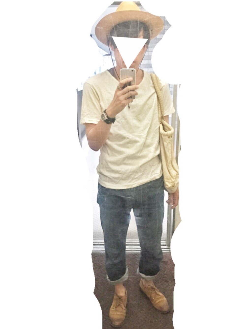 タトゥーマンTシャツと新しく買ったパナマハットでシンプルに。