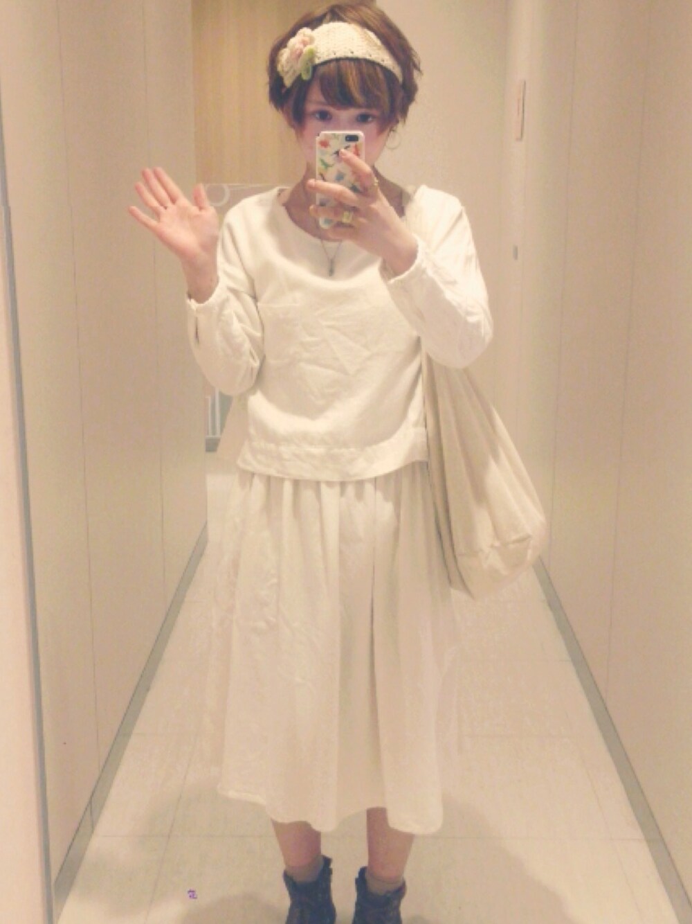 オフホワイトコーデ 綿の生地で触り心地ばっちし◯ ほわほわgirl 目指しました。