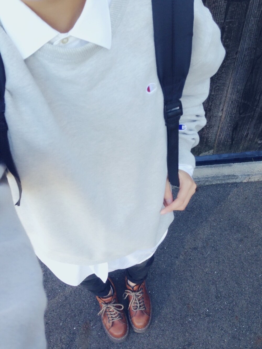 秋はスウェットが楽で着心地よいです○ 靴は古着屋さんのセールで安く買えたので とても満足しています。