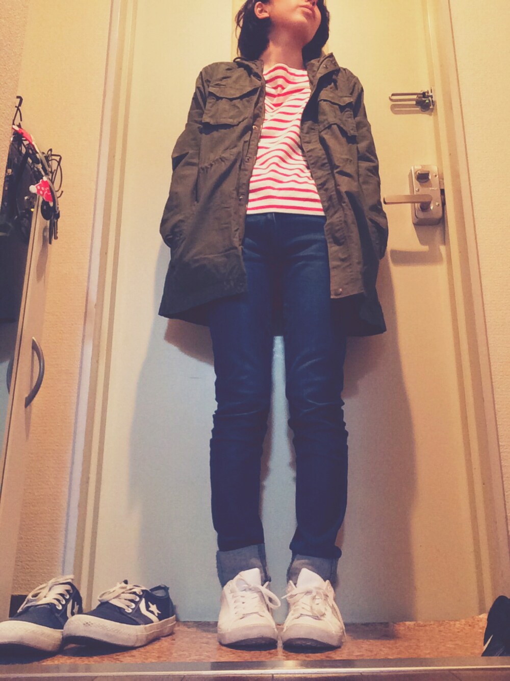 めちゃ下からアングルですみません🙇 見つけてくださりありがとうございます、riiです🙋 トップスはユニクロのボートネックTです。 濃い色デニムと合わせたかったので 白黒と迷った末赤を購入。 全身ユニクロ&GUな1日でした。 プチプラ命な私ですが、 xgirlのジャケットをねらっております… ちょっと高いんだけど 欲しすぎるからポチッとしようかな……🤔💭