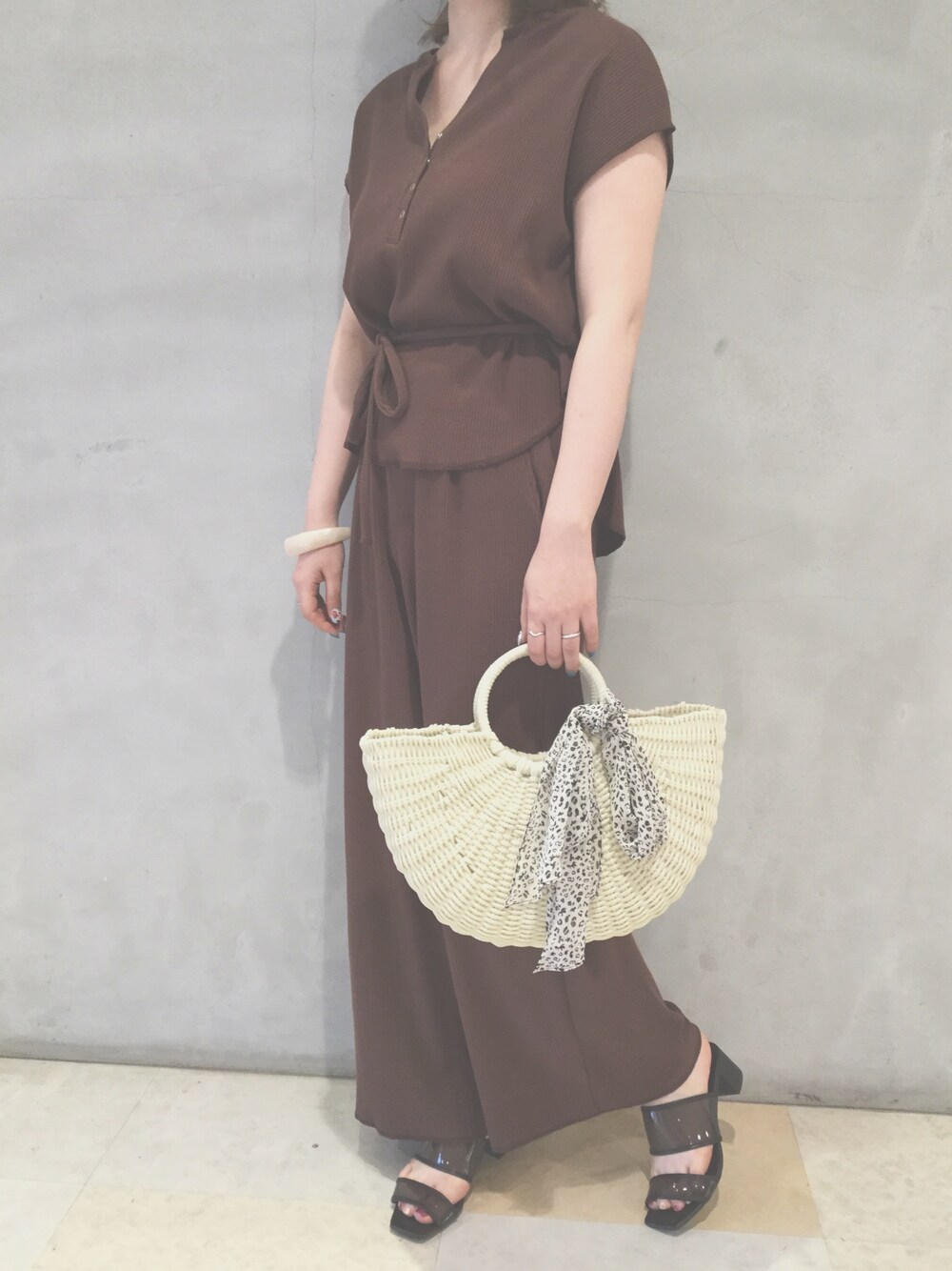 今年人気のリブセットアップ♡ ブラウンが大人カジュアルで オシャレな着こなしになりますよ◟̆◞̆