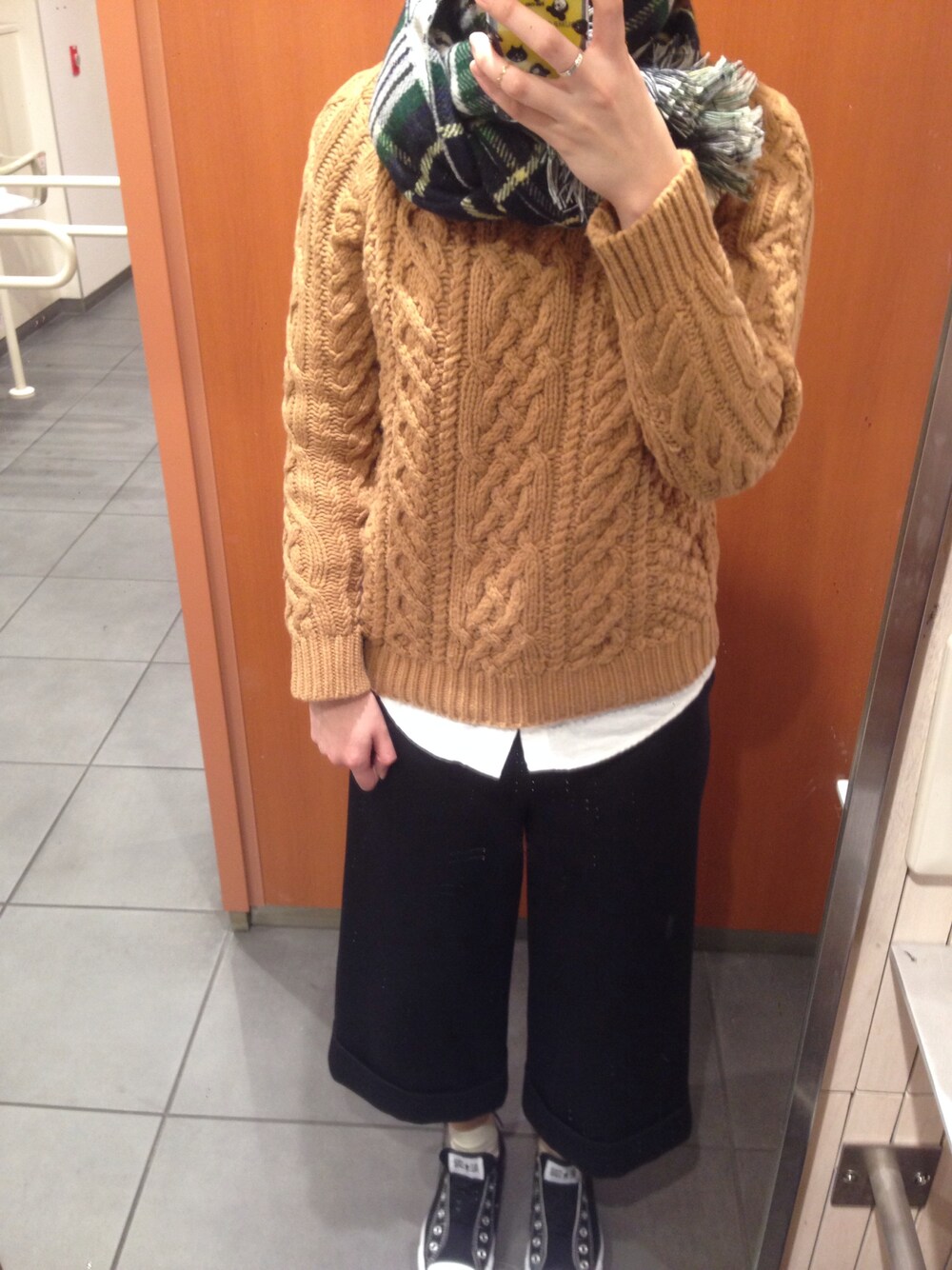 ざっくりニットにワイドパンツ。 くるくるマフラーは買ってすぐに着用w リバーシブルでふ☆ 寒い中、歯医者行ってまいりましたとさ。