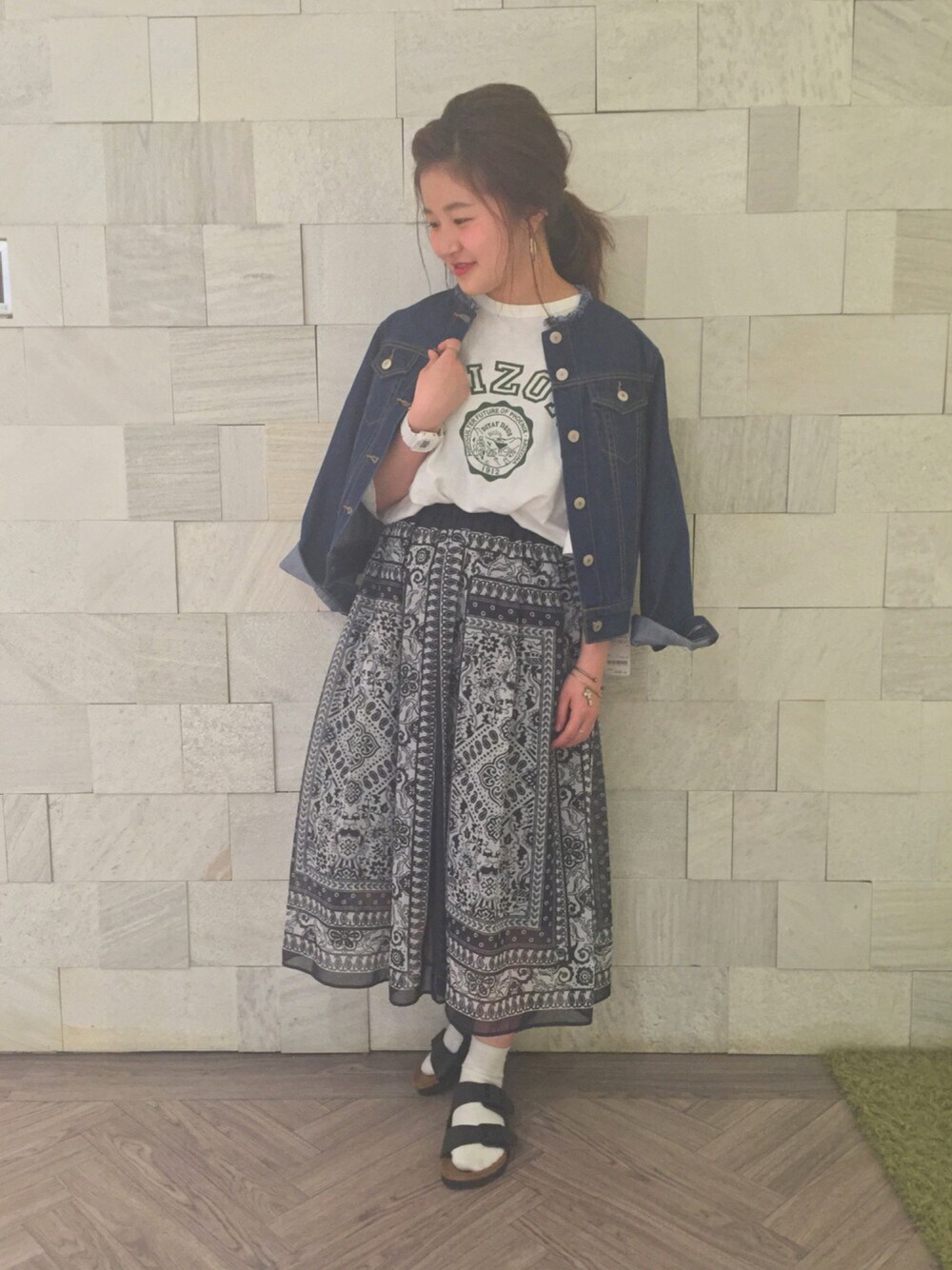 Gジャンコーデ第二弾💕 今年注目のパネル柄スカート◎ サンダルと合わせて先取りコーデです!