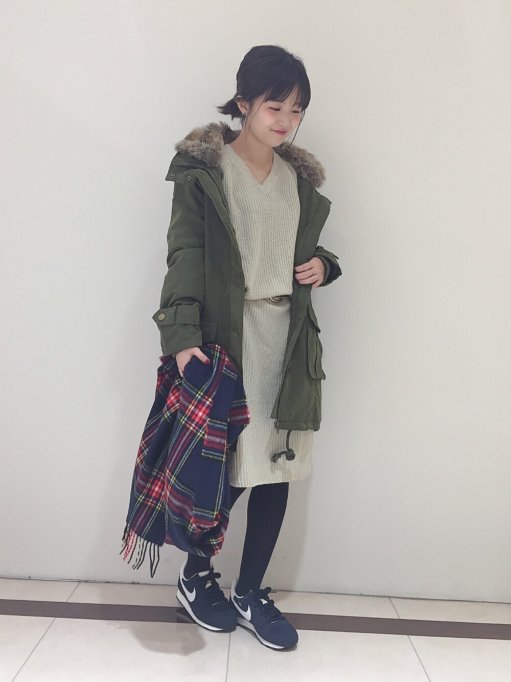 モッズコート×ニットワンピ🍥 ニットワンピはベルトですっきり💫