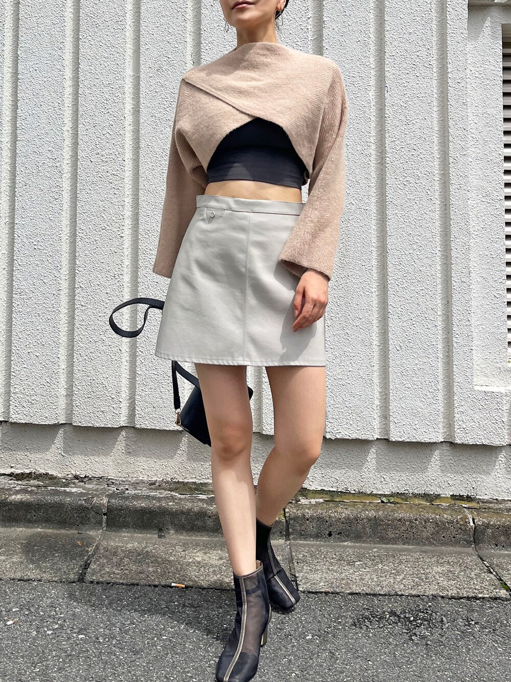 Jewelobeのニット/セーター「カシュクールクロップドニットトップス」を使ったコーディネート