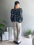 Jewelobeのシャツ/ブラウス「ラッフルカラー2wayチェックブラウス」を使ったコーディネート