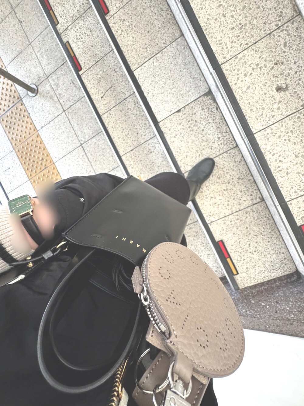 ショルダーバッグ&スマホショルダー Wで肩掛け! 違和感ないよう MA1ベスト内に後者を忍ばせました こちらは後者も撮影用に出してます