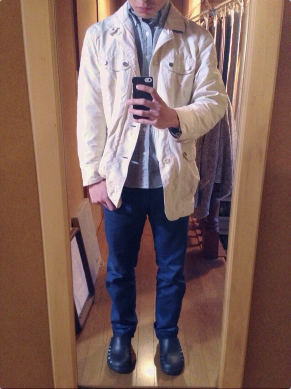 ま しのデニムパンツ「【men's FUDGE11月号 掲載アイテム】MIRROR COATING DENIM」を使ったコーディネート