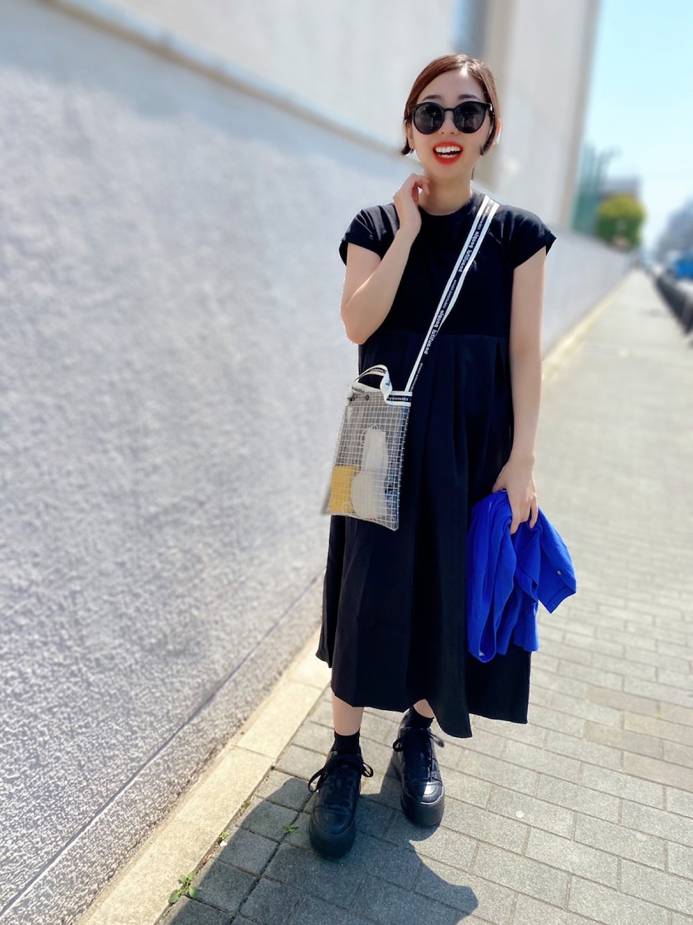 sugarsugar_Kのワンピース「異素材切り替えフレンチスリーブフレアワンピース」を使ったコーディネート