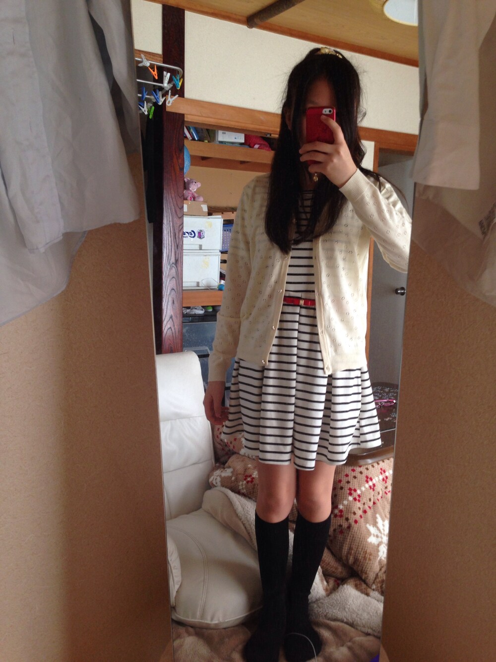 あったかいので中のボーダーワンピは半袖