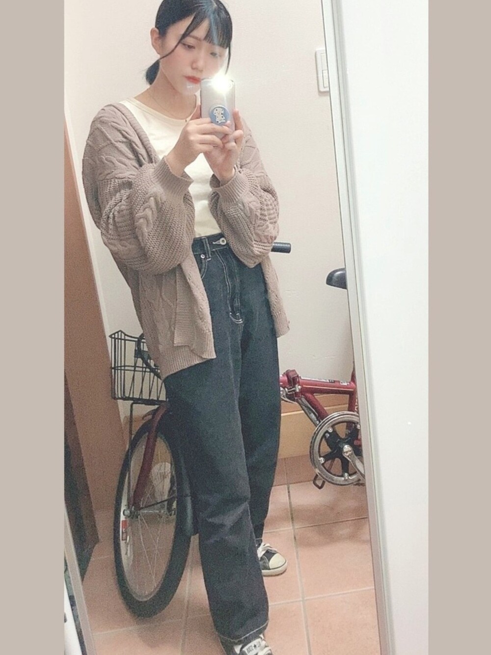 このロンTインスタのサイトで買ったからどこのか忘れちゃった😶❔ . . kutirのストレートパンツはどんなトップスにも合うしapresjourのカーディガンはボリューム袖が可愛すぎるから好き🤎 . #秋服#カーディガン#ボリューム袖#ストレートパンツ#いいね返します