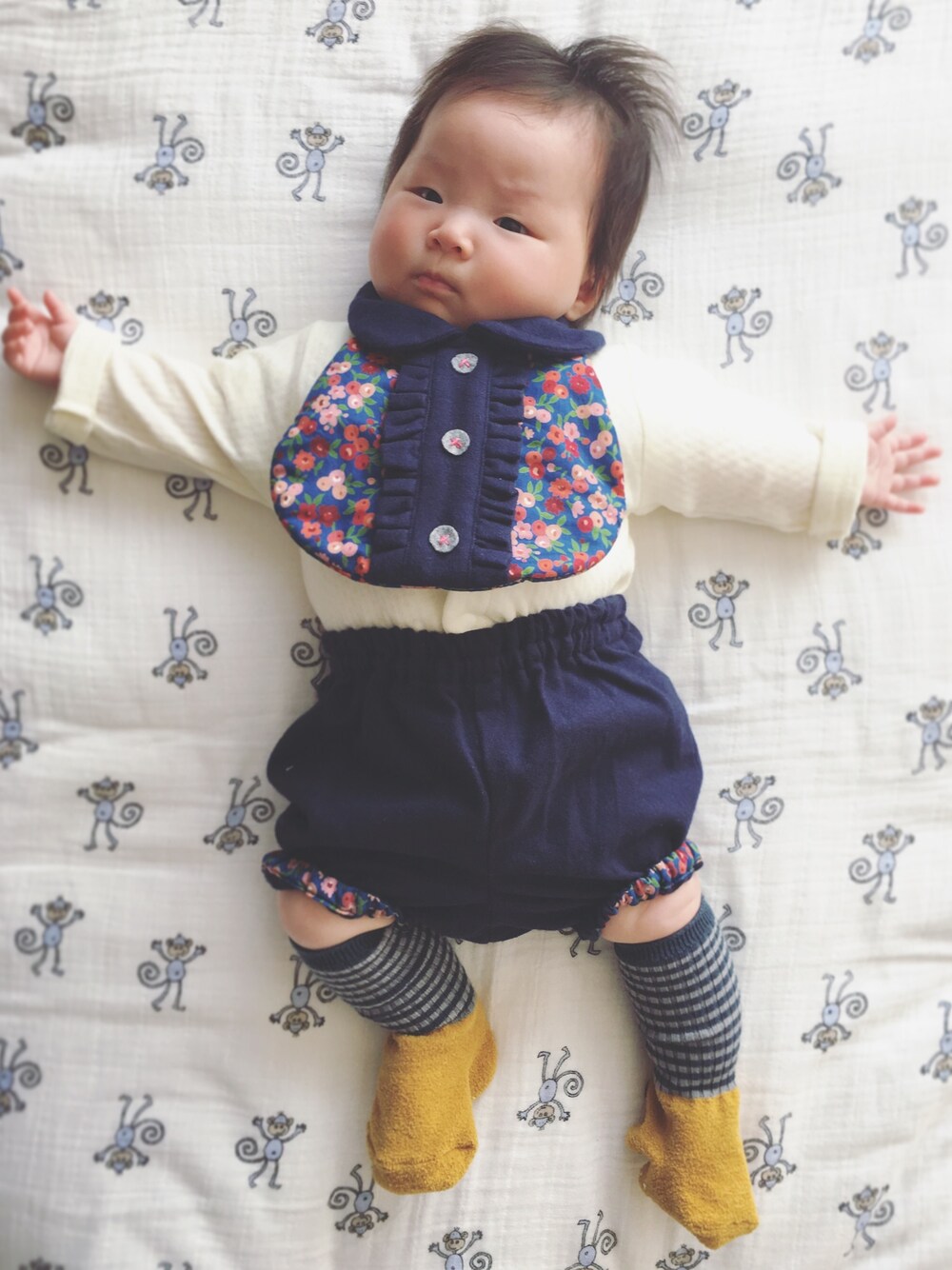 ぼくとわたし #おでかけしまスタイ #まんまるパンツ のセットアップスタイル。 娘の生後100日記念に。