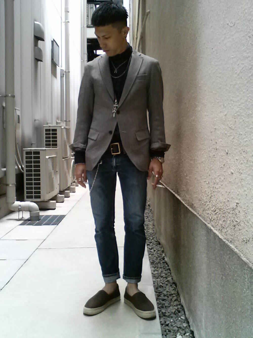 GANRYUのエスパドリーユです 個性の強いブランドですが、ベーシックな物もあるのでこんな感じにもコーディネート出来ますね らしくないと言われるかもしれないですが、たまにはGANRYUらしくないのもあり?? Tシャツジーパンがよかったのに、今日も商談です(..) 気持ちだけでもタグ付けさせて下さい!! すみません!!