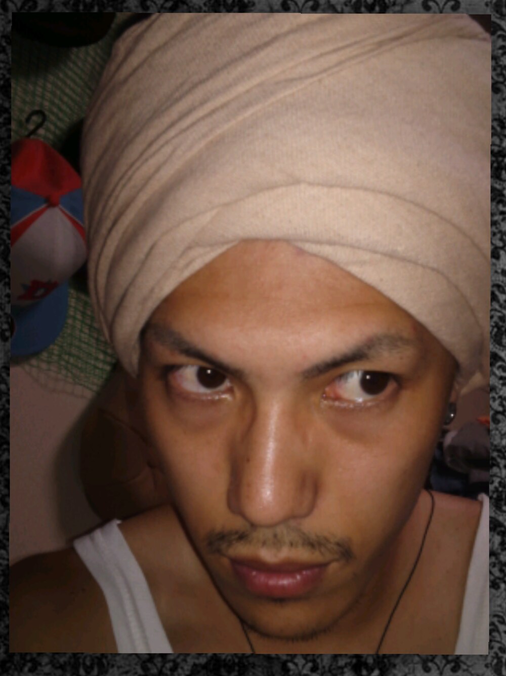 インド人に教えてもらって巻いたターバン。 はい、僕は日本人です!