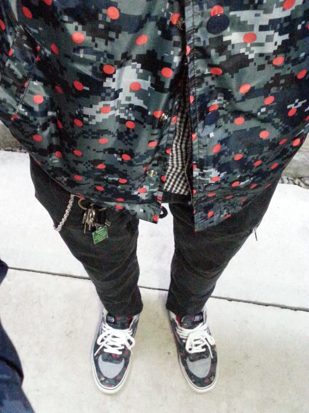 今日はコーチジャケットとスニーカーを同じ柄にしました~ はるっていいですねぇ~ アウター→supreme×comme des garcons シャツ→H&M パンツ→under cover スニーカー→ supreme×comme des garcons スリッポンではないですが、ハーフキャブです~