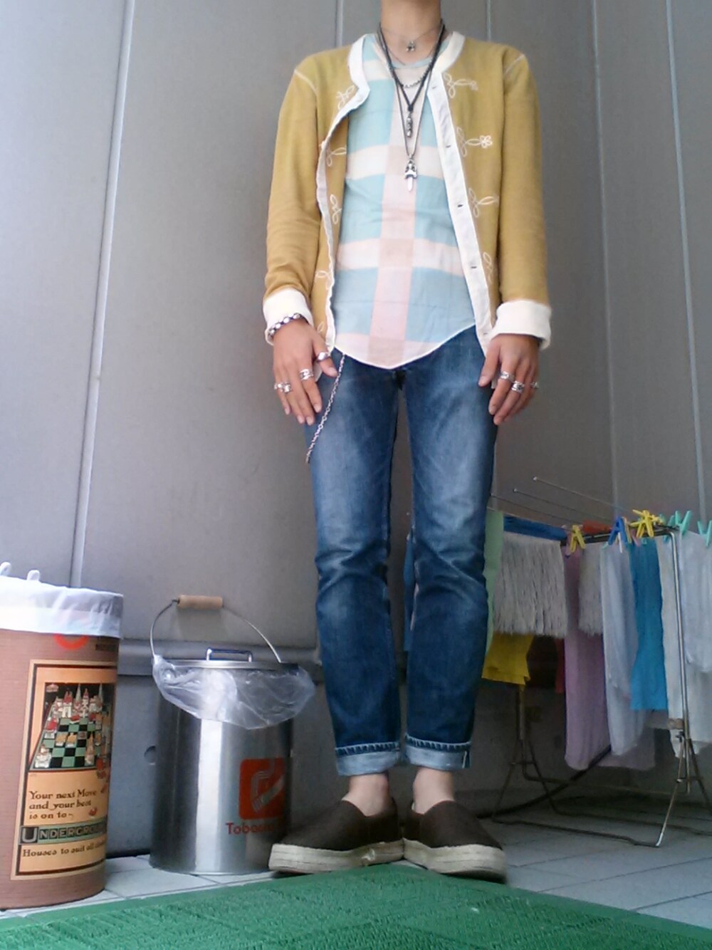 たまには黒の無い日も載せないと、黒ばっかりの人だと思われるので、今日はカラーです。 アウター→古着 インナー→インポート パンツ→FACTOTUM シューズ→GANRYU Comme des garcons アクセ→chrom hearts GANRYUのエスパはちゃんとした靴っぽいのでかなり履きやすい!! スリッポンみたいな感じ??