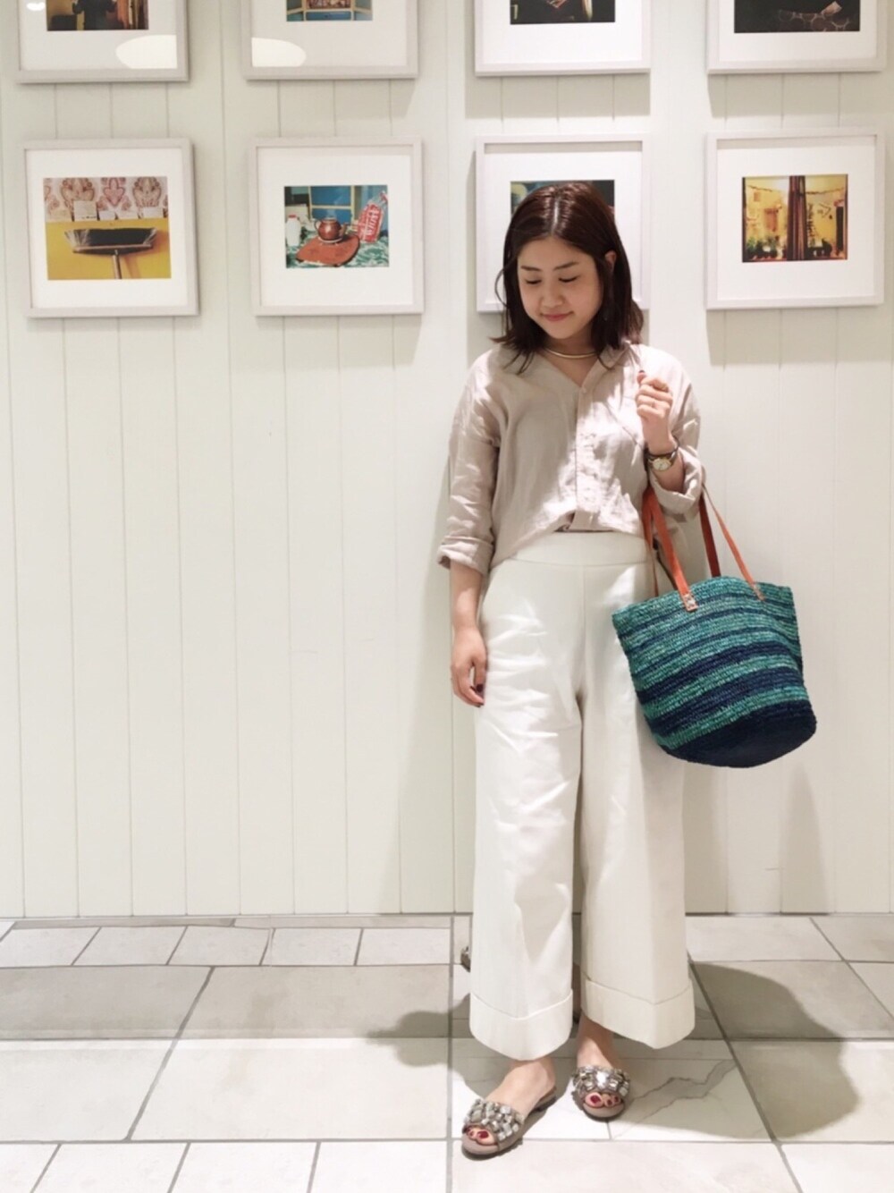 moe.のサンダル「ビジュースライドサンダル」を使ったコーディネート