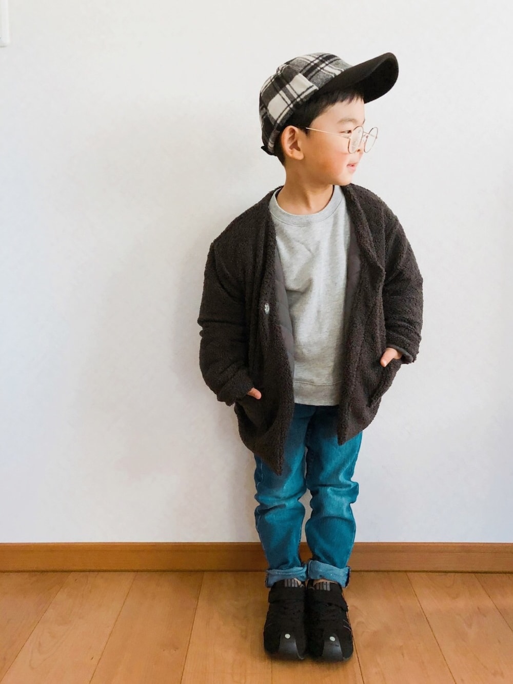 今日は長男。 前回アップした次男の服とリンクコーデしようと購入していたアイテム達。 今年は私のブームカラーがグレーとベイクドなので、どんどんモノトーンと茶系が増えてます笑 文句言わずに来てくれるの何歳までかな?