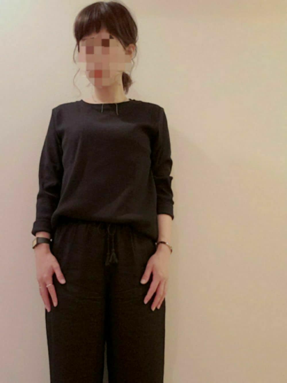 今日こーで。 リブクルーネックTはサラッとした肌触り👌 サテンドレープストレートパンツは ルームウェアだけど タッセルの紐もワンポイントで 可愛くて😳 結果 黒々しく 仕上がったのでした…