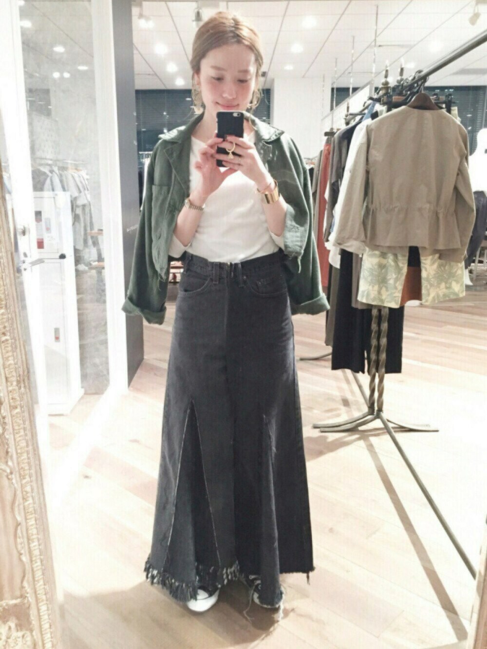 おにゅーのボトムス💘 マキシスカートに見えて、ワイドフレアデニム👻💕 また白黒カーキだ😂 それにしても、 無印のプチプラトップスが使い易すぎる件🤔✨ ------------------------------------------------------ HAREの新作も別アカウント@harexaxxbimil ☜で更新中♡