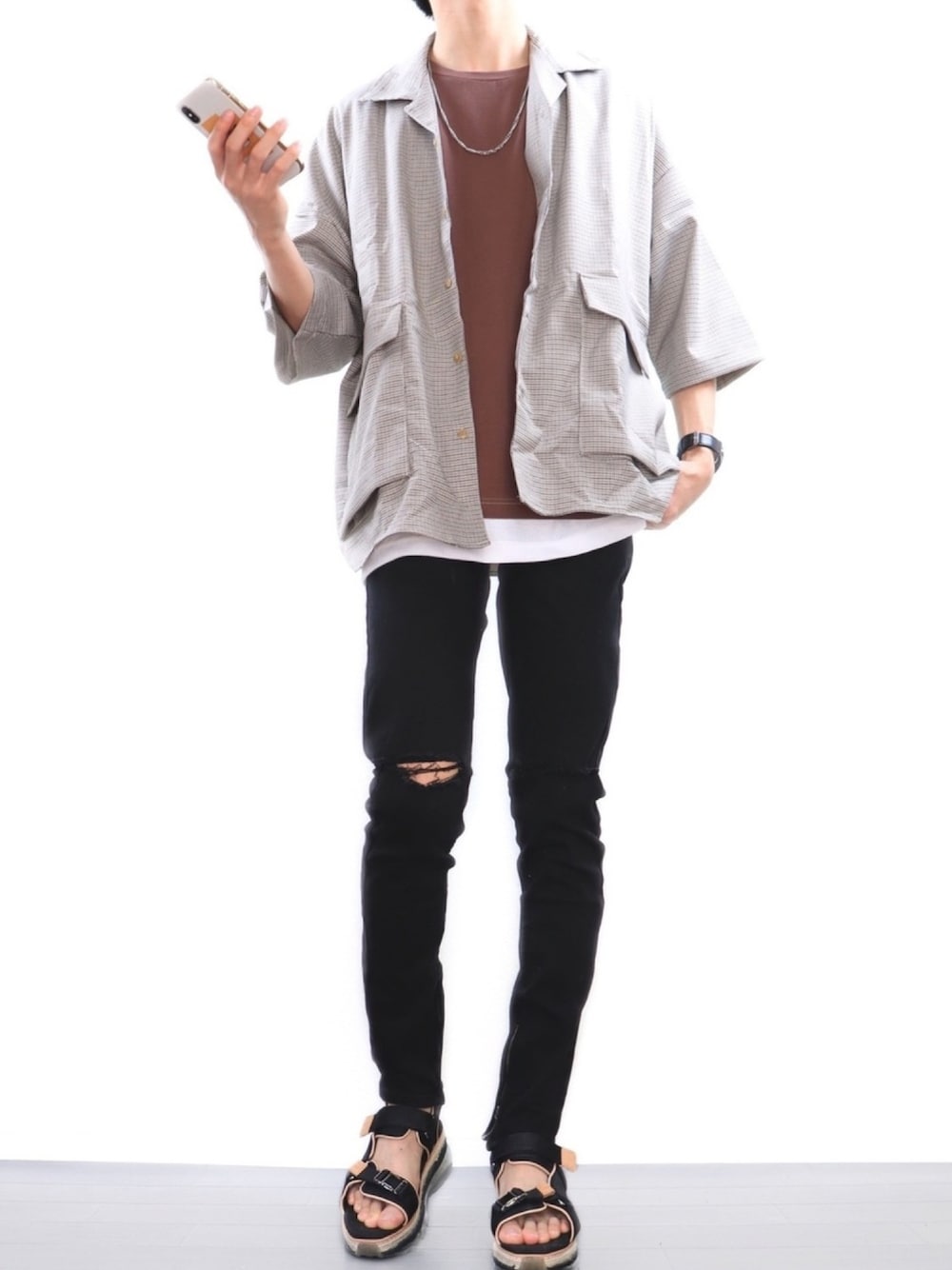 ぼーんのシャツ/ブラウス「Casper John アンダーフラップビッグポケットオープンカラーシャツ」を使ったコーディネート