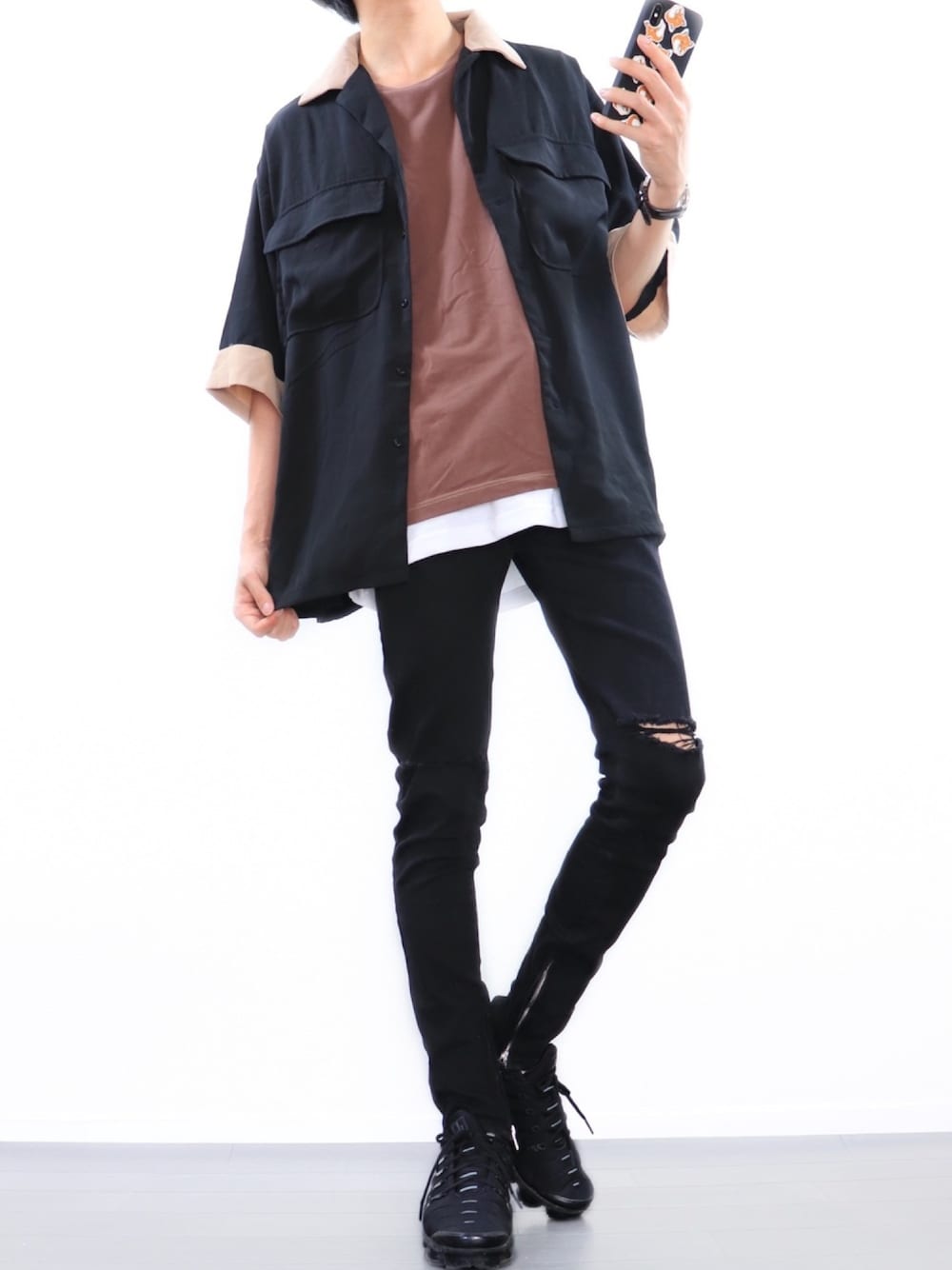 ぼーんのシャツ/ブラウス「ファッションインフルエンサー SHOTA × INTER FACTORY バイカラールーズオープンカラーシャツ」を使ったコーディネート
