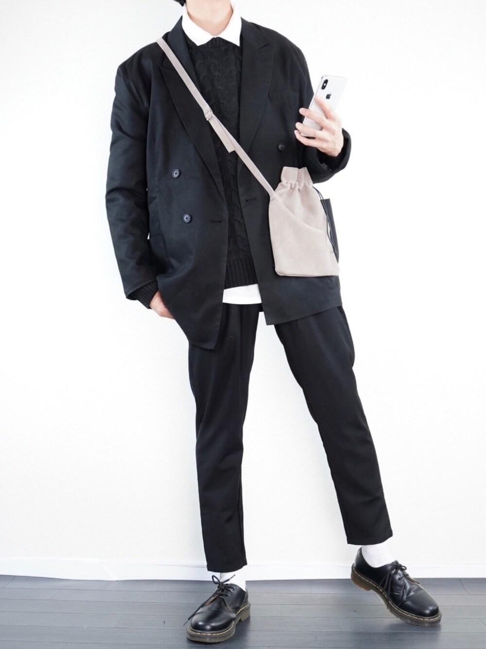 【title.🤽♂️】 たまにはキレイめコーデもよき🤤✨ でもキレイめすぎると周りに固い印象を持たれて しまうので、コーデに抜け感を取り入れることが キレイめコーデの重要なポイント! 今回はコーデの印象を和らげるために ぴたんくんとDEVICEがコラボしたオリジナル スエード巾着バッグを取り入れました!😂 めちゃくちゃかわええ!!!!😍💕 これを付けるだけで硬くなりすぎないコーデに なってますよね!? 色もグレーだから色んなコーデにも落とし込める 最高のバッグです!😂✨ (グレーは即完して、今は予約販売になってました😳) 3色展開でブラック、ベージュ、グレーが 販売されておりますので、自分の好みにあった アイテムが見つかるはずです!🥰 グレーよかったし、ベージュもほしいな😍💕 【coordinate point.👔】 今回のコーデはASTRONOMYのジャケットと CASPER JOHNのスラックスを合わせた秋の キレイめモノトーンコーデになります!😎✨ ASTRONOMYのテーラードジャケットは ほどよいビッグシルエット!!🤤 サイズはXLを着ており、ゆったり着用しております! ゆったり着用することでジャケットの固い印象も 少しは軽い印象にもってこれます!🥰 インナーはニット+シャツの王道の組み合わせ!👍 MONO-MARTニットけっこうオススメ!😂👍 パンツは激推しアイテムのスラックス!😍💕 かなり細身のスラックスでウエストはゴム仕様と なっており、めちゃくちゃ履きやすい🤤✨ 光沢感もある高級感溢れるアイテムですので スキニーしか持ってないって方にめちゃくちゃ オススメできるアイテムです!😂 【item.🏋️】 🧥outer:XL 👕tops:L 👖pants:S 👞shoes:26cm 【SNS🤹♂️】 Twitter:@WEAR0923 instagram:bone_wear ↑follow me!!! ご依頼等はインスタのDMにて受け付けます! プロフィールからでもとべます! じゃあ🙋♂️