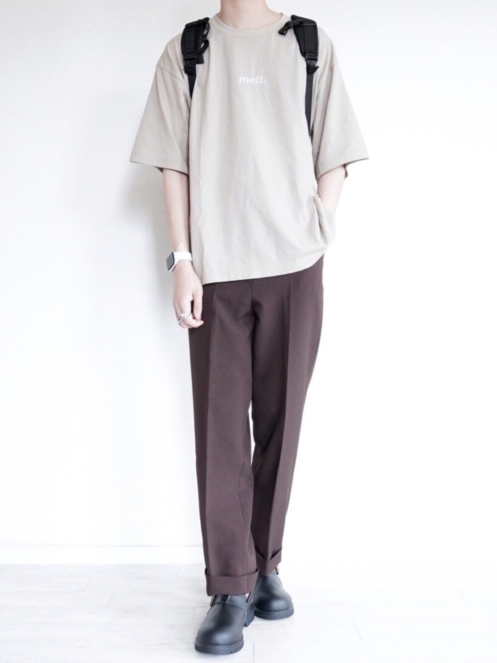 【title.🤽♂️】 5/26 12:00よりZOZOにて発売開始! melt. ロゴ刺繍ビッグTシャツ(仮) ¥4,950 (税込) 【S.M.L展開】 【coordinate point.👔】 本日のコーデはmelt.の新作ビッグTと 大人気スラックスを合わせた夏にしたい 暖色コーデになります!😎✨ 配色的には秋っぽいですが女性受けのいい グレージュとブラウンを基調とした夏コーデ! カジュアルな印象のコーデなので 革靴でコーデを引き締めてます! CASPERのレザーサボほんとにオススメです笑 【item.🏋️】 👕tops: L 👖pants: M 👞shoes: M 【SNS🤹♂️】 Twitter:@WEAR0923 instagram: @bone_wear ↑follow me!!! ご依頼等はインスタのDMにて受け付けます! プロフィールからでもとべます! じゃあ🙋♂️
