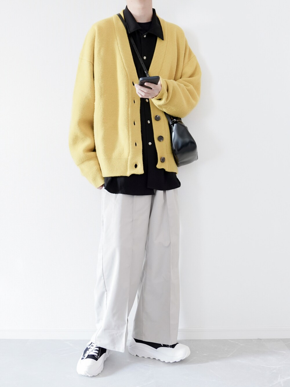 【イエローカーディガンで今っぽコーデ】 本日もご覧いただきありがとうございます! ぼーんです🐝 今回はM.P Studiosのイエローカーディガンを使った トレンドカラーコーデになります! 今年のトレンドカラーとして大注目されている イエローは持っておきたいカラーの一つ!🍯 着れば明るい印象のコーデになるので 春服としてぴったりのアイテム! トレンド感のあるコーデにしたいので パンツはライトグレーのパンツをチョイス🥚 ライトグレーも今年のトレンドカラーで センタープレスの入ったパンツもトレンド アイテムとして注目されております。 カジュアルな印象のコーデになっておりますので キレイめアイテムとレザーバッグを取り入れ バランスの取れたコーデに仕上げてます! カジュアルアイテムがトレンドいま、 革靴やレザーバッグなど、小物でキレイめアイテムを 最低でも一つは持っておきたいところです! 本日も最後までご覧いただき ありがとうございました🥰 インスタも頑張って投稿しておりますので よければ覗きにきて下さいね! 【インスタID: @bone_wear】